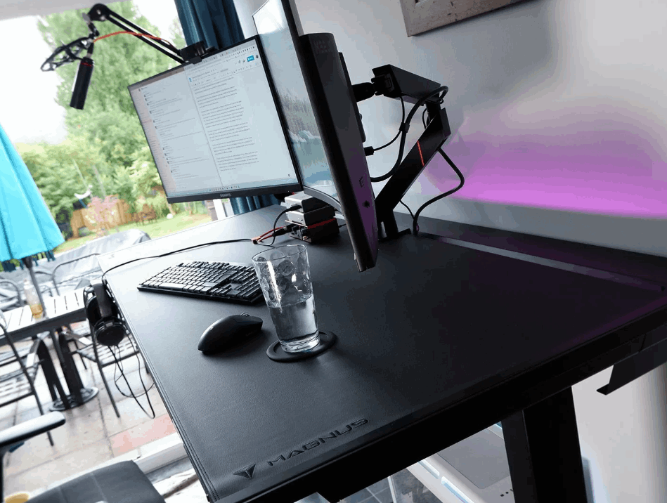Electric height‑adjustable streaming table that lets you switch between sitting and standing without disrupting your streamer setup. Memory presets store ideal positions for gaming, editing, and office tasks at the same workstation. Heavy‑duty legs keep the streaming table rock‑solid, giving full‑time creators a healthier way to manage long hours at their streamer setup.